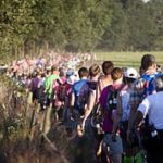 もう40年近く前になると思いますが、テレビのニュース番組か何かで面白い話を紹介していました。世界中から現役の軍人、アスリート、さらに民間の健脚自慢の人たちが集まって何日も長い距離を歩き通すというユニークな大会があり、日本からも毎年自衛隊員なども参加するのだと。この時は場所がヨーロッパということだけでどこの国なのかまでは覚えておりませんでした。しかし、オランダに住むようになって、それがオランダで毎年開かれる正式名称 De 4 Daagse(単に「4日間」という意味のオランダ語です。英語では、Internatinal four days marches Nijmegenといいます)という有名な国際大会であることが分かりました。オランダ東部、ドイツ国境に近いナイメーヘン(Nijmegen)という町で毎年7月第3火曜日から4日間開催されるウオ―キング大会でした。世界中から歩くことに自信のある人たちが集まり、30km・40km・50kmという距離にクラス分けされ、各々が4日間毎日その同じ距離を歩き通すという単純と言えばこれほど単純なことはないというくらいのユニークな大会です。参加者は自分に合った距離を選び、4日間合計120・160・200kmというとてつもない距離を踏破することになる訳です。 これは、いわば本式のレースではありますが、この時期オランダ各地で大人から子供に至るまで、地区単位や、会社仲間や、あるいは学校行事としてなど、いろいろなグループで近隣を3km・5km・10kmと体力に見合った距離を設定して夕方から一斉に歩きまわる光景が見られます。オランダのこの時期は日が長いので、夕方から数時間かけてこのユニークなイベントを4日間楽しみます。その距離を踏破するとメダルがもらえます。5年かけて5個目のメダルをもらうと、今度はさらに立派な大きなメダルをもらえます。 7月に入ると、同じ日にたくさんのグループがそれぞれ設定したコースで歩き出すと、お互いのコースが錯綜していたりすることはよくあります。また、大きなグループになると先頭から最後尾まで随分と距離が空いてしまうことがしばしばです。当然信号待ちもあるので、交差点では四方に長い行列ができることになり、そんなときなど、自分たちの進む方向をしっかり覚えておくか、地図でその都度よく確認しないと大変なことになります。全員がすべて知り合いという訳でもないですから、間違って他のグループについて行ってしまい迷子になる子供(大人も)も出来てきます。私は子供が通っていた関係もあり、ロッテルダム日本人学校のグループの引率役として他の父兄たちと一緒に毎年歩きましたが、大人も含め何人かは必ずコースを外れて大回りしたり迷子になったり、皆がゴールしてもなかなか帰ってこないというハプニングも何度か経験しました。出発地点が日本人学校付近ですから、たとえ迷ったとしても住所さえ言えれば親切なオランダ人が帰り道は教えてくれます。 この地域コミュニティーごとの小さな大会の呼び名は、Avond 4 Daagse (4日間の夕べ、という意味)、あるいは日本人社会では「歩け歩け大会」と呼んで楽しんでいます。