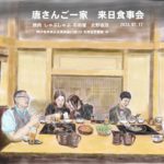 土谷重美2023年展の第三回目(最終回)です。 ~・~・~・~・~・~・~・~・~・~・~・~・~・~・ 7.唐さん一家来日 日本にも工事に来てくれた上海の唐さん一家が観光旅行で来日。この後、高校2年のお嬢さんがアメリカに留学。言葉の勉強をした後、絵の勉強をするために来年、米国の美術大学を受験するそうです。 8.小中学校同窓会 コロナ規制も緩和され、4年振りの同窓会。中学校は、山の上の小学校から5名加わるだけなのでいつも小中学校合同同窓会となっています。殆どが近畿地区に住んでいるので、卒業生31名の内、20名も集まってくれました。(物故者6名) 9.御所市の山麓カフェ 五條市に帰る途中、葛城山麓の山麓カフェに立ち寄ります。時々、コンサートや絵画展が開かれ、この日は中田女史による水彩画展が開かれていました。一緒に写っているのは五條高校の同窓生達です。 ご覧いただきありがとうございました。 土谷重美